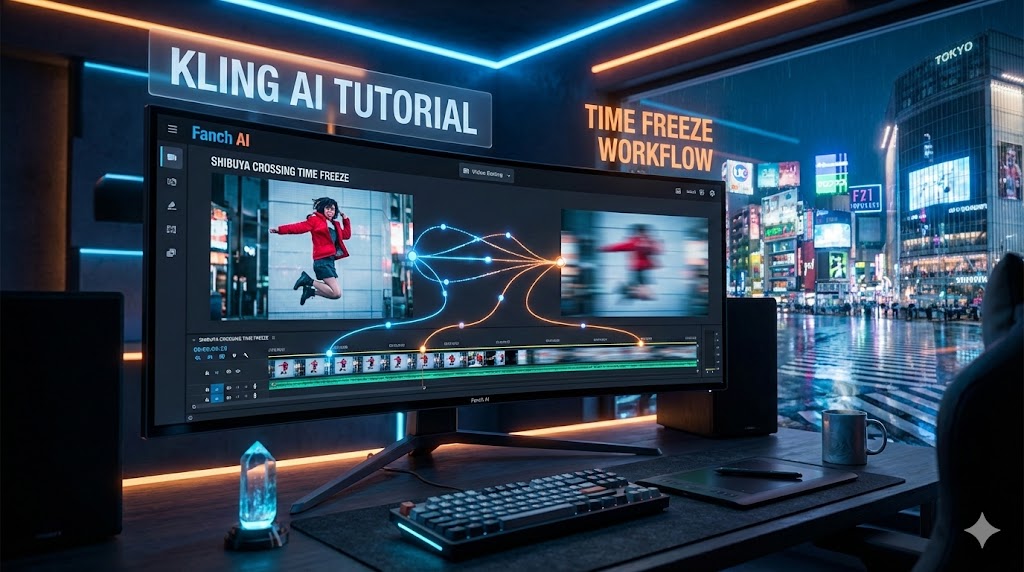 Looking for a Kling AI tutorial? Learn how to master the 'Time Freeze' (Bullet Time) effect using Nano Banana Pro and Kling 2.5 on Fanch AI.