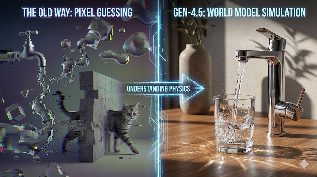 Gen-4.5 operates differently. It doesn't just generate an image; it calculates a world.