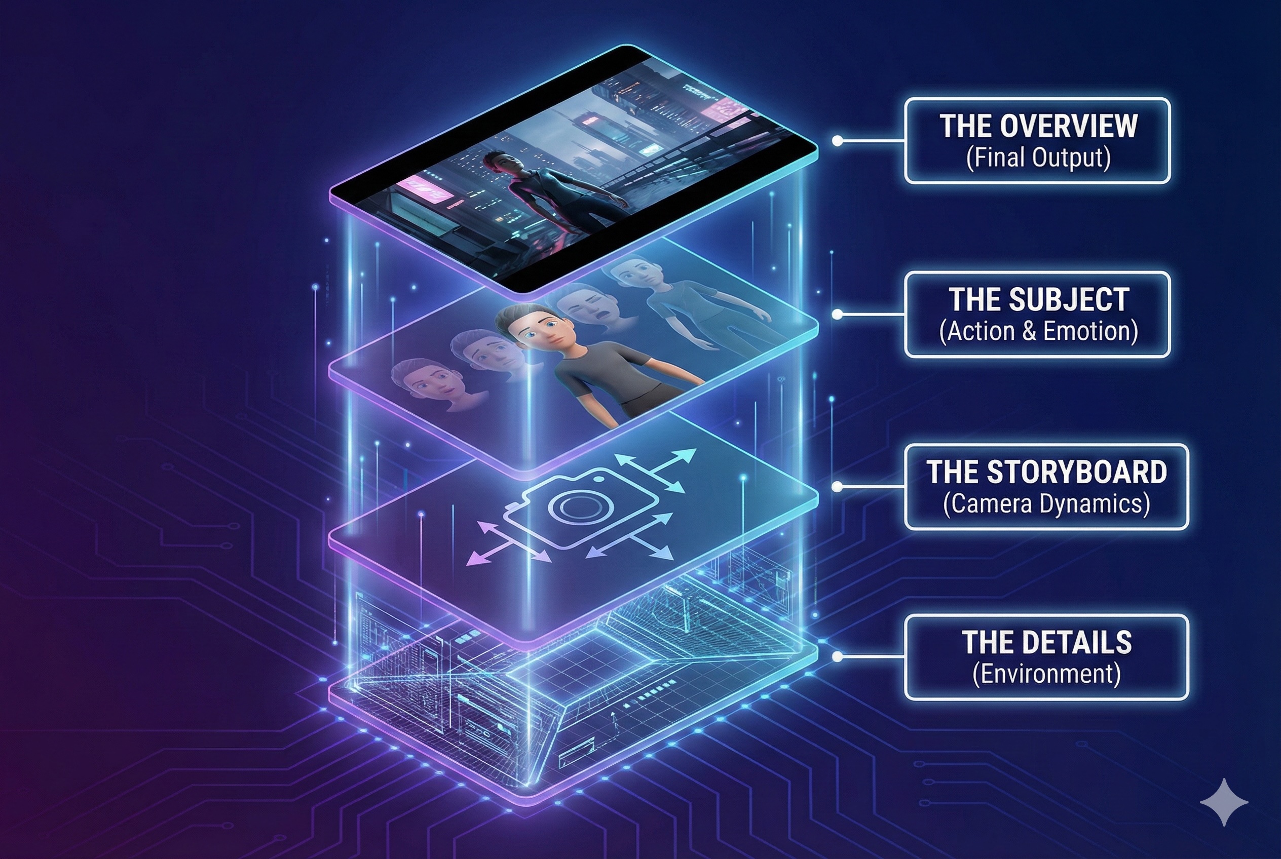 - Structure: Specify the exact Camera Movement and Framing.