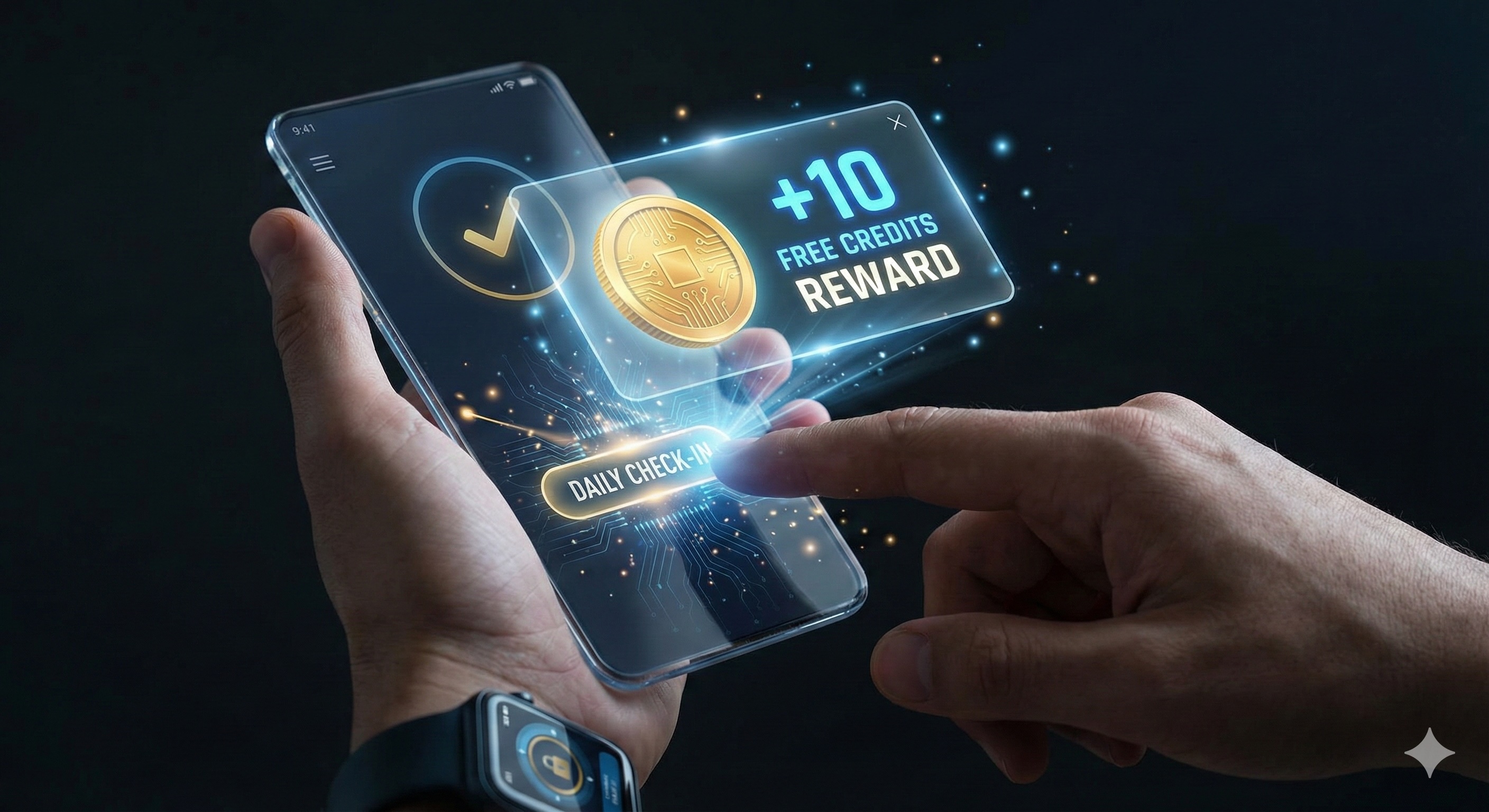 - Reward: The system automatically adds 10 Free Credits to your balance.